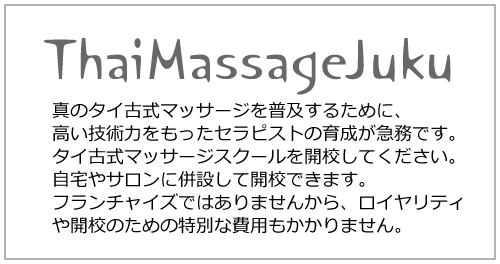 通常、こうしたパッケージはフランチャイズ形式で加盟金を納めた上に、毎月ロイヤリティという形で看板料を納めながら運営するのが一般的なビジネスモデルでしょう。ところが、タイマッサージ塾プランはフランチャイズ形式をとっていませんので、加盟金や毎月のロイヤリティも一切ありません。何故か?それはタイマッサージ塾プランは、NPO法人である日本トラディショナルタイマッサージ協会(TTMA)の慈善事業プランだからです。経費はかかりますから、その分はいただきますよ。でも、TTMAは、最終目的が決して「金儲け」ではないからです。TTMAの目的はあくまで「タイ伝統医学の普及による社会貢献」だからです。